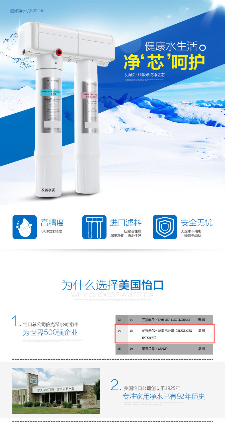 美国怡口800FFDC净水器 家用厨房直饮自来水过滤器 净水机